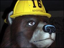 In addition to “Suirrely,” Keystone Fire Company’s bear, the Rader Beverages bear “Nostalgia” features photographs of Boyertown’s history as its body art, but the face and paws belong to Ed!